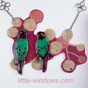 This piece follows the same steps as my other domed fabric projects, but then layers the bird cut-outs over a saturated but not domed background cut from the same fabric. This accentuates the dimension and gives the 2 layers different textures.