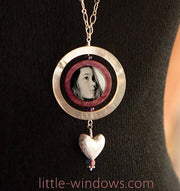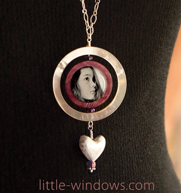 Here's a gorgeous new look! This is one of my designs, using the Doming technique to create a spinning inset within shell donut beads. This is all put together with a simple wire-wrapping technique.