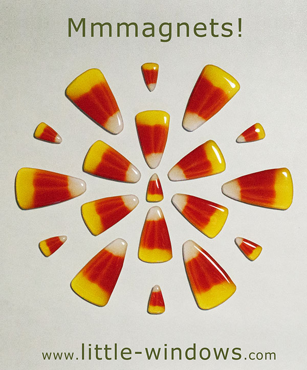 Rather than using actual candy corn, I used a much better looking photo, and resized it using the FREE guide below into large and small sizes, domed both sides, then drilled them or inserted magnets while the resin set up. These are durable, lightweight and waterproof. I also like that I can make as many as I want!