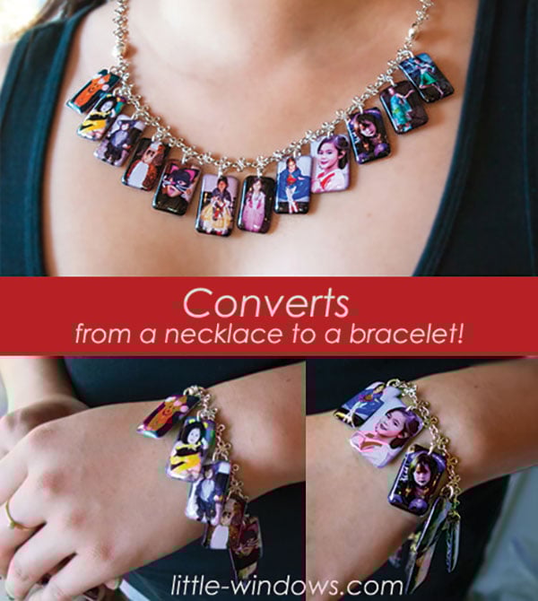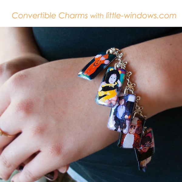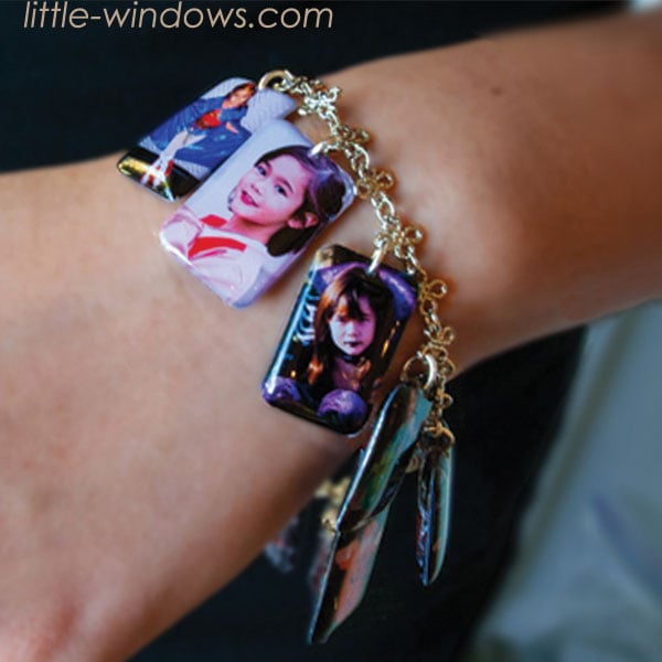 We're hooked on charms. Once we finished our Pics 'n' Chips creation, this idea evolved. I went back and found photos of my kids from every Halloween (so far), and charmed them all. I love being reminded of the silliness!
