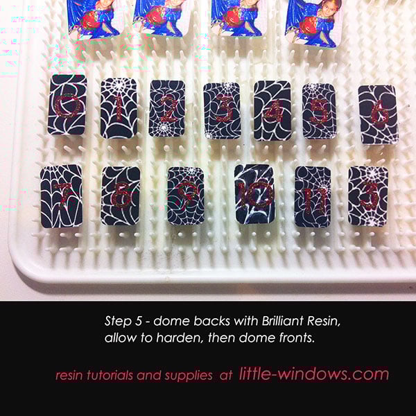 5. Dome backs with Brilliant Resin, allow to harden, then dome fronts