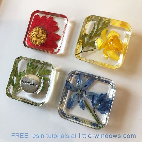 Embedding flowers can be so beautiful, but they must be completely dry, any moisture will turn them brown in the resin.
