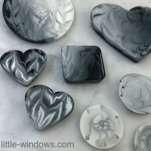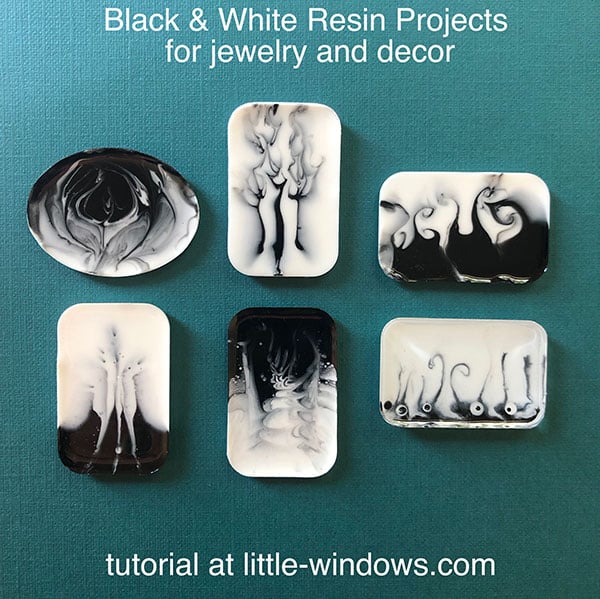 This has become one of our most popular resin casting techniques, and these pieces can be used to make unique resin jewelry, decorations, magnets, resin door/drawer pulls, anything you want! I used the best molds for resin jewelry making, and black and white resin colorants that are designed to blend well with no added bubbles. You can start with a black base and swirl in white, or start with a white base and swirl in black, lots of fun resin jewelry making options to explore!