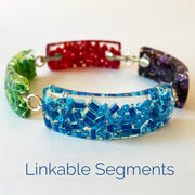 This post focuses on using your resin Mold Dividers in new ways. Besides creating resin cuff bracelets, resin color block bracelets, and teardrop-shape castings, there is yet another way to use these super-versatile Mold Dividers. You can place them in your Double Sided Resin Molds to divide the space and make separate cast pieces which can them be linked together or used individually to create amazing jewelry and hair ties!