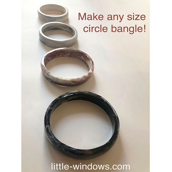 In the quick vid above I show you how you can cast in our Oval, Square, and Rectangle Bangle Molds with Brilliant Resin, then reshape them to create larger sizes of circle bangles. This technique will not work with other brands or types of resin, as they have different formulations that won't allow for this sort of manipulation.