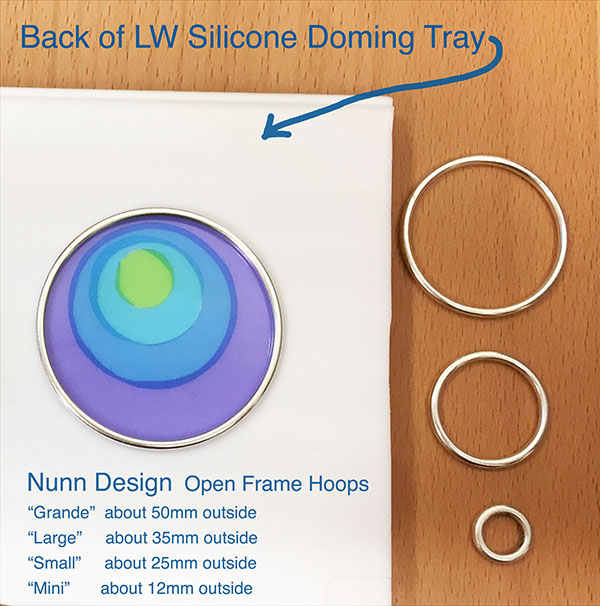 Step 3: Use the flat back of our Silicone Doming Tray as an easy-release surface. Arrange the colors and hoops however you'd like. As you can see, the circles don't need to be completely perfect as the metal hoops will cover the edges where they meet.