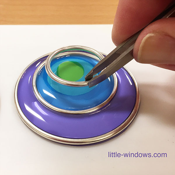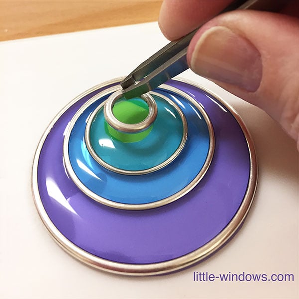 If you've allowed your resin to thicken enough, these rings will push the resin aside as you insert them, causing a ripple or rounding effect within each colored section. This extra dimension brings an eye-catching shine to your pieces.