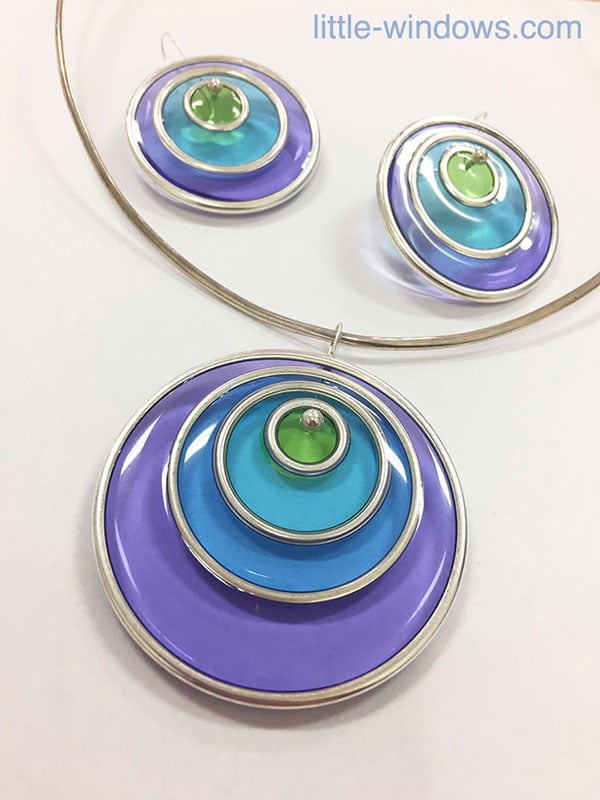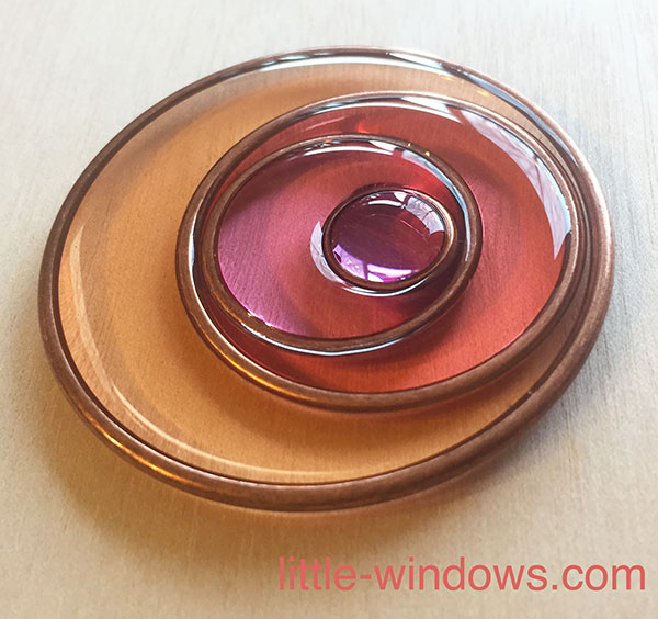 Here's a variation using other colors in the Resin Color Film - Pale Tints Pack. I used Pale Apricot, Pale Peach, Pale Pink, and Pale Lilac, with Copper Open Frame Hoops, arranged like a stylized rose.