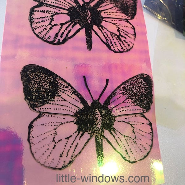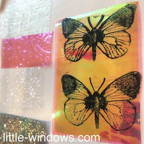 First, stamp your designs onto Dichro-ISH Film using black acrylic paint, and allow to dry.