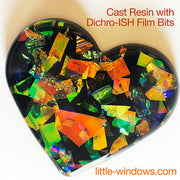 You can snip your Dichro-ISH Films into tiny bits and use them like confetti. With these films, it's best to put a layer of Black Resin (Brilliant Resin + a few drops of Black Resin Colorant) behind them so the shifting colors show well.
