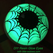 The video above is a complete tutorial for making 3 types of cast resin eyes. You can add Glow In The Dark effects to any of these, but it most closely follows the Glitter Eye technique - just add glow powder instead of glitter.