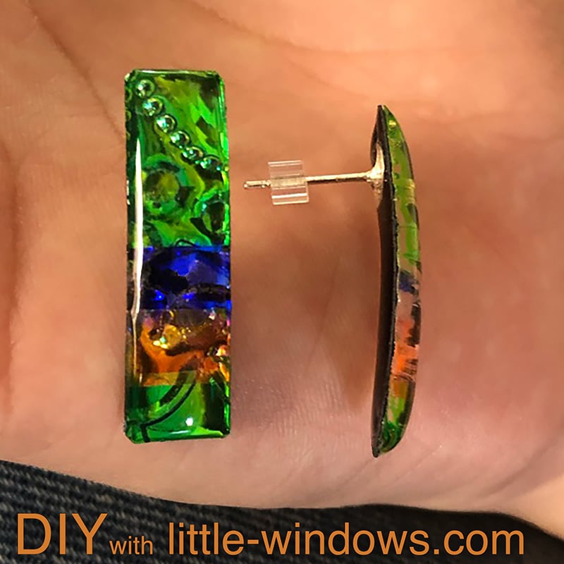 I domed the back sides with clear resin and embedded Sterling Silver Accent Pins, then bent them into earwires: