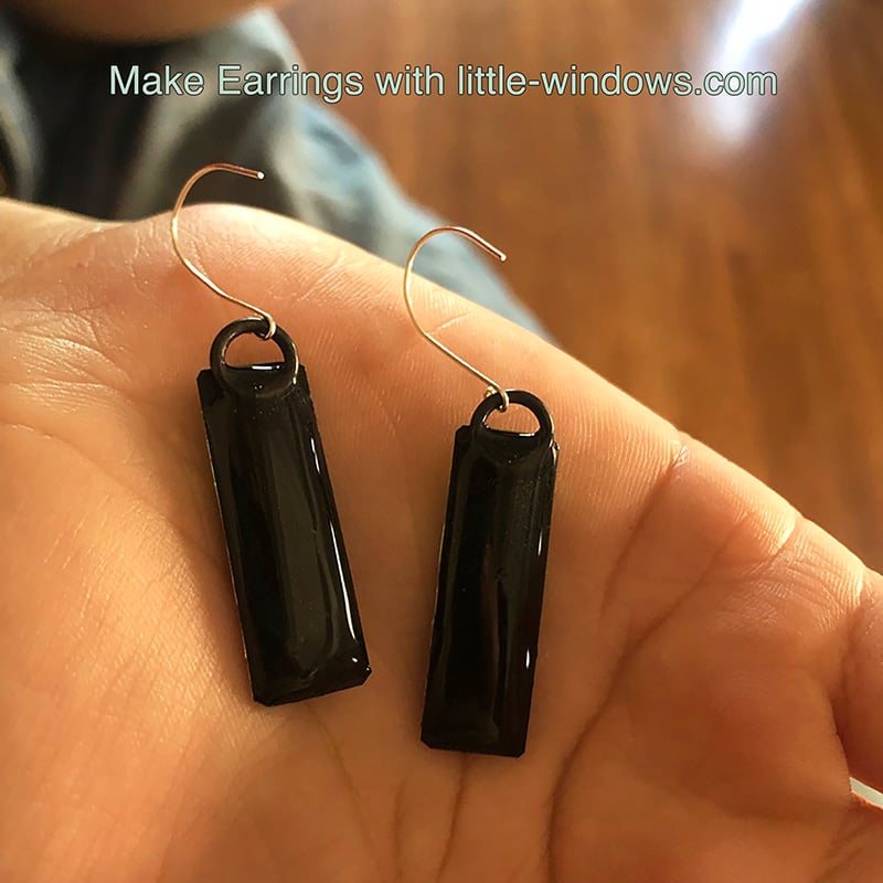 Black jumprings were embedded in clear resin on the back of these little beauties, then I bent Sterling Silver Accent Pins to make earwires: