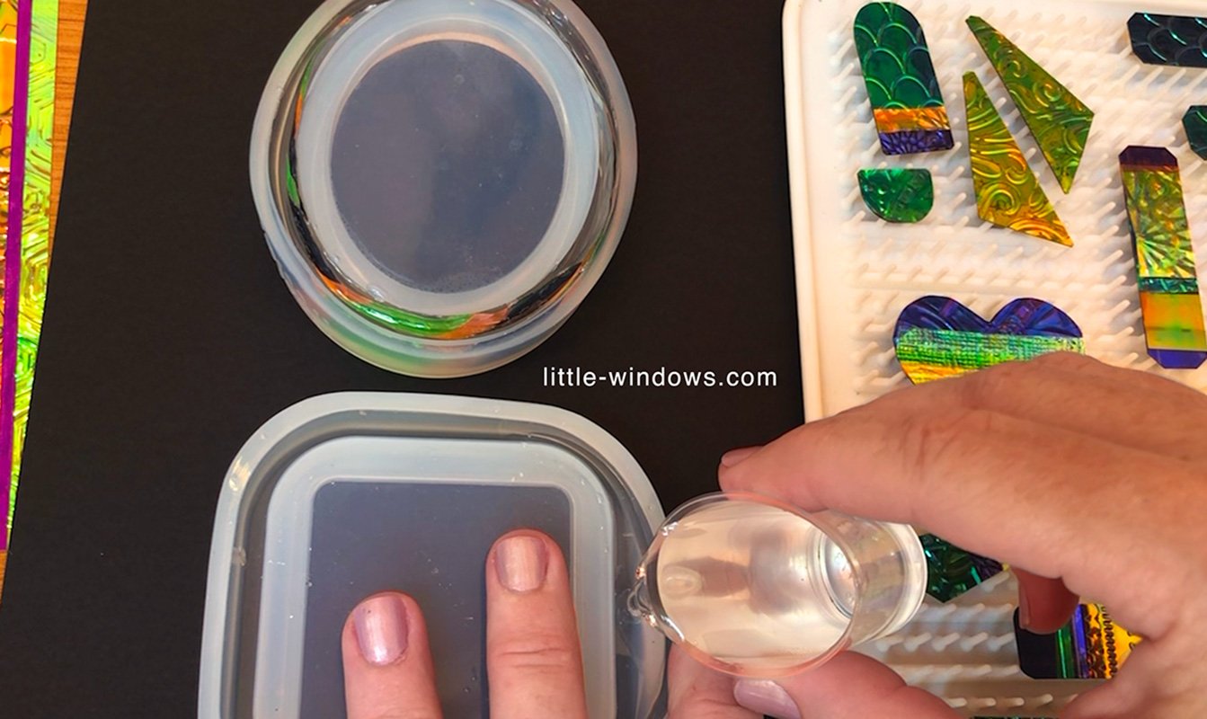 I embossed my Dichro-ish film with a mermaid scale pattern:
