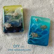 Hello ocean lovers, get out your resin art supplies and get ready for some fun! I hope you enjoy this detailed tutorial on how to make glow in the dark ocean coasters and castings with your resin art supplies from little-windows.com. This video above not only covers working in Resin Rings to create amazing ocean wave coasters, and resin casting in silicone molds with turtles surfing the waves, it also includes some beautiful jewelry projects with mermaids and seahorses frolicking on top through the ripple effect.