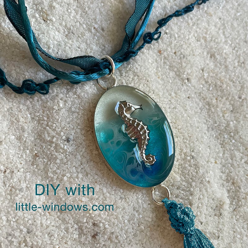 I used the resin jewelry supplies listed above, along with some isopropyl alcohol to create different types of ocean wave textures including Brilliant Resin, Alcohol Inks, and White Resin Colorant, poured in angled layers. You'll find the best Resin Jewelry Supplies and so many project tutorials here at little-windows.com, and if you need help along the way, just ask!