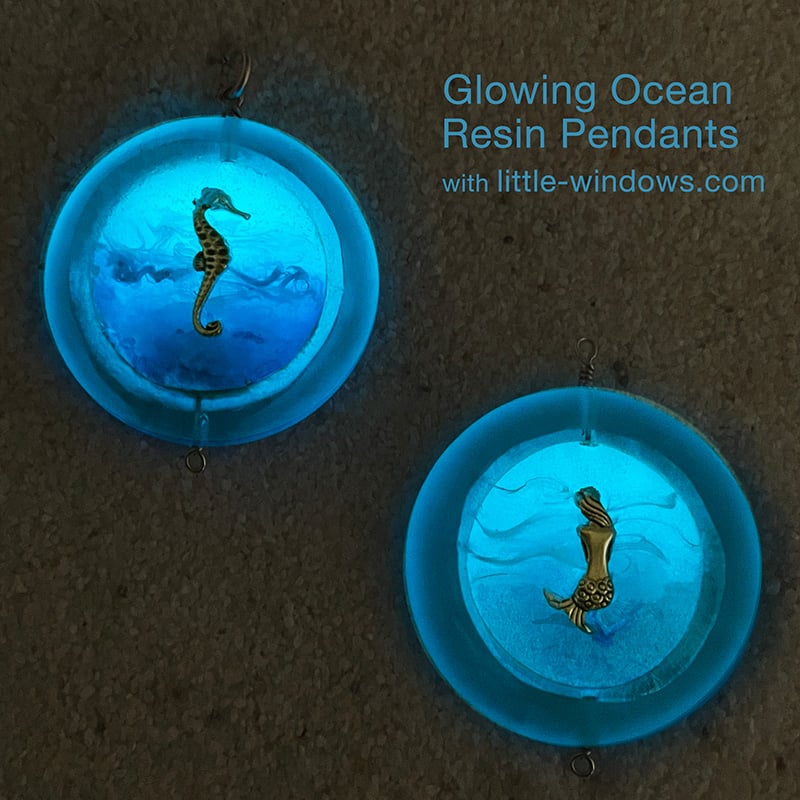 Hello ocean lovers, get out your resin jewelry supplies and get ready for some fun! I hope you enjoy this detailed tutorial on how to make glow in the dark ocean wave jewelry with your resin jewelry supplies from little-windows.com. This video above not only covers working in bezels and open-backed donut beads to create amazing ocean wave jewelry, it also includes a how-to for making ocean resin coasters with an octopus lurking in the deep, and resin layers cast in silicone molds with turtles surfing the waves. I hope you love creating these beautiful jewelry projects with mermaids and seahorses frolicking on top through the ripple effect.