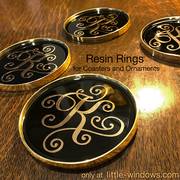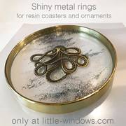 For this coaster I secured one of our metal Resin Rings for Coasters and Ornaments on a sheet of backer film, poured a layer of Brilliant Resin about 1/3 - 1/2 way up, allowed that to thicken for about 30 minutes, then added silver and opalescent glitter with my mixing wand, drawing it out from the center.