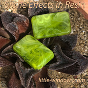 These pretty pieces were made from leftovers from a dirty-pour project. I started with a bit of leftover Brilliant Resin mixed with White Resin Colorant, split it into 2 cups, and added yellow-green alcohol ink to one and a bit darker color to the other. Then swirled the 2 together and swished it through a cup of clear resin. It looked like glass marbles with the green ribbons flowing through the clear. I just love this result!