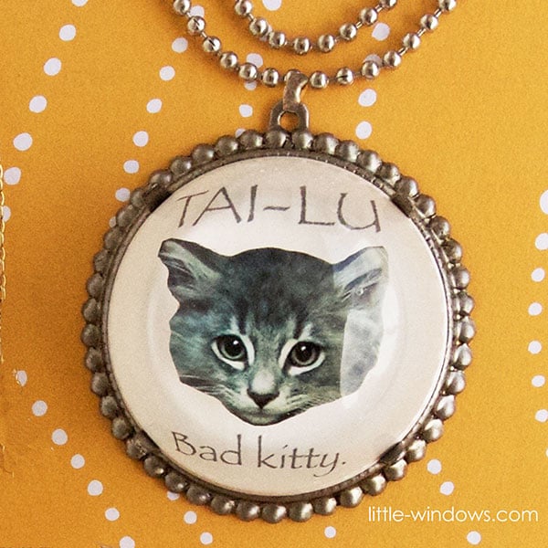 In this one, I cut out our kitty cat's head and layered that with her name and type printed on Clear Photo Film. Then, I backed this cab with a thin layer of white resin made with our White Resin Colorant.