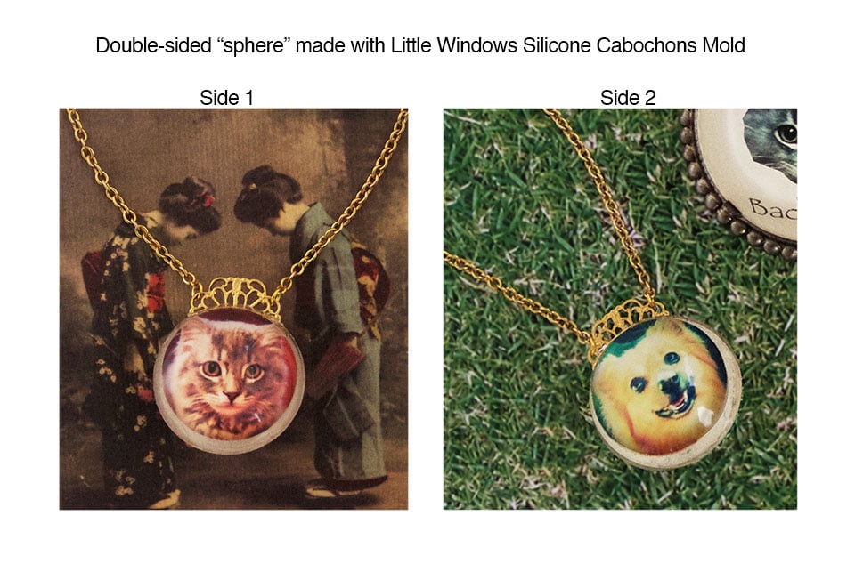 Although our flat-bottomed molds are better suited for making photo jewelry, you can also make shiny half-sphere resin photo domes using our Silicone Cabochons Mold.
