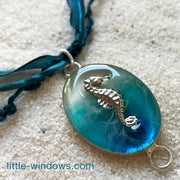 For ornaments, drill a shallow hole in the front and back of your resin piece, open wide a jumpring or large bail, feed into holes and close.