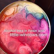 Pour 3rd layer, swish in white resin colorant, then drip in alcohol inks as shown in tutorial.