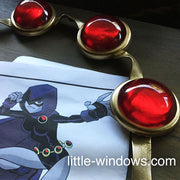 My daughter asked for help to create her Halloween costume this year, Raven from Teen Titans. She pulled together the costume, and I made the accessories - belt, cape pin, hand amulets and upside-down diamond-shaped bindis. I think they came out pretty amazing so I thought I'd share in case you want to try something similar: