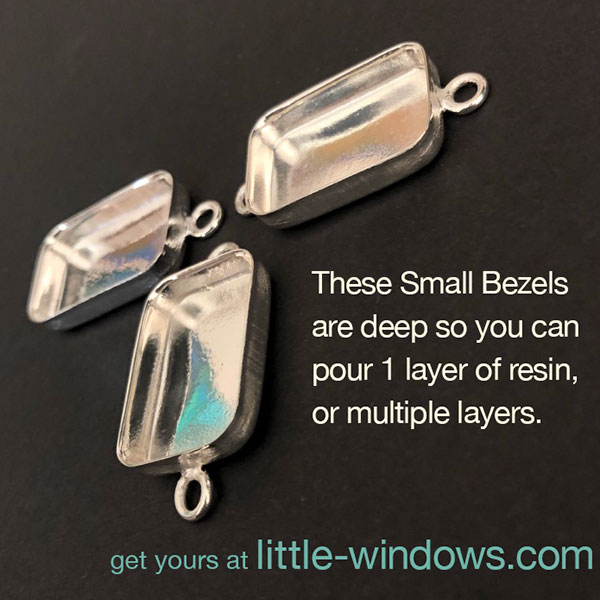 For a thorough tutorial on working with resin in bezels - both closed back like these, and open backed - CLICK HERE